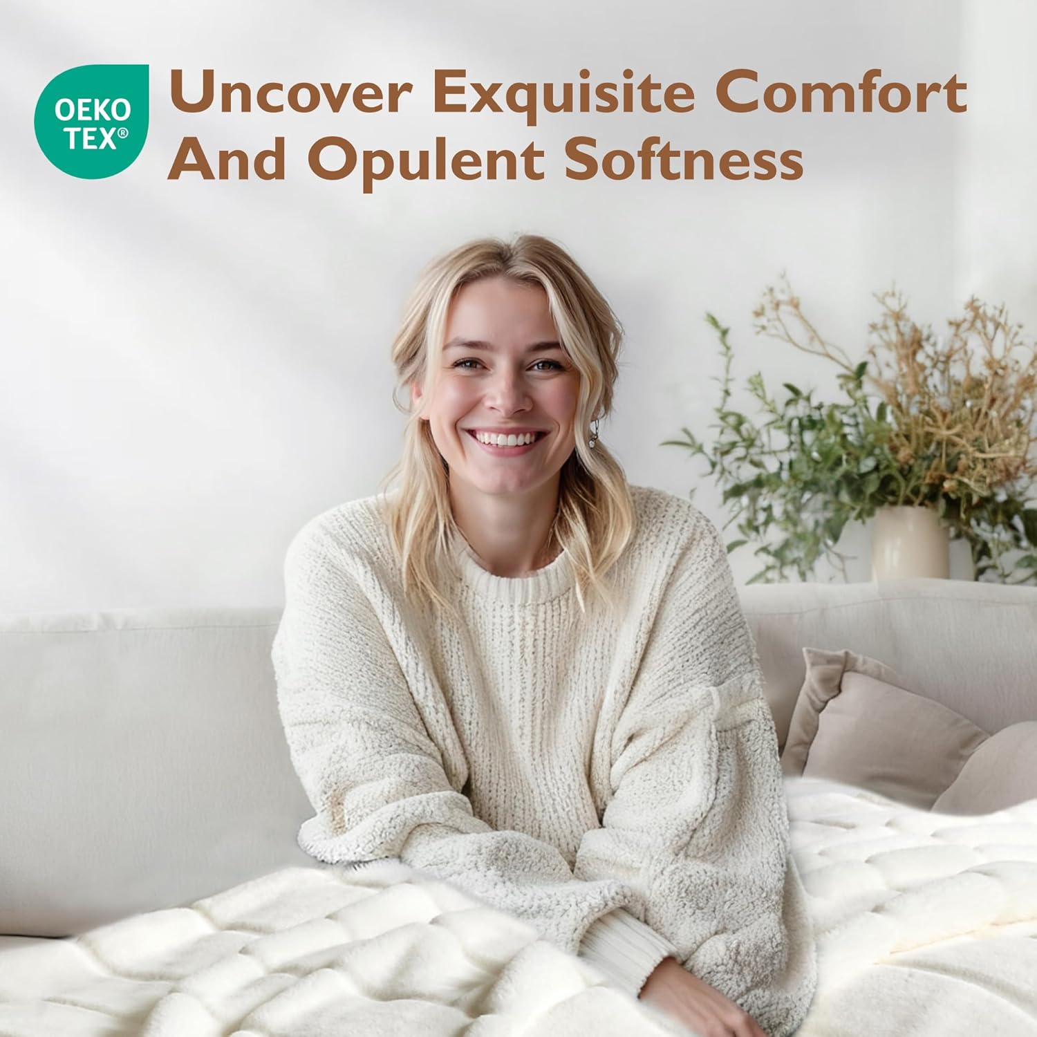 - Ultra Plush Dual-Sided Comfort: Experience cloud-like softness with our unique two-sided design. One side features incredibly fluffy faux rabbit fur for supreme warmth, while the reverse offers a smooth, crystal-soft short plush for versatile comfort .
