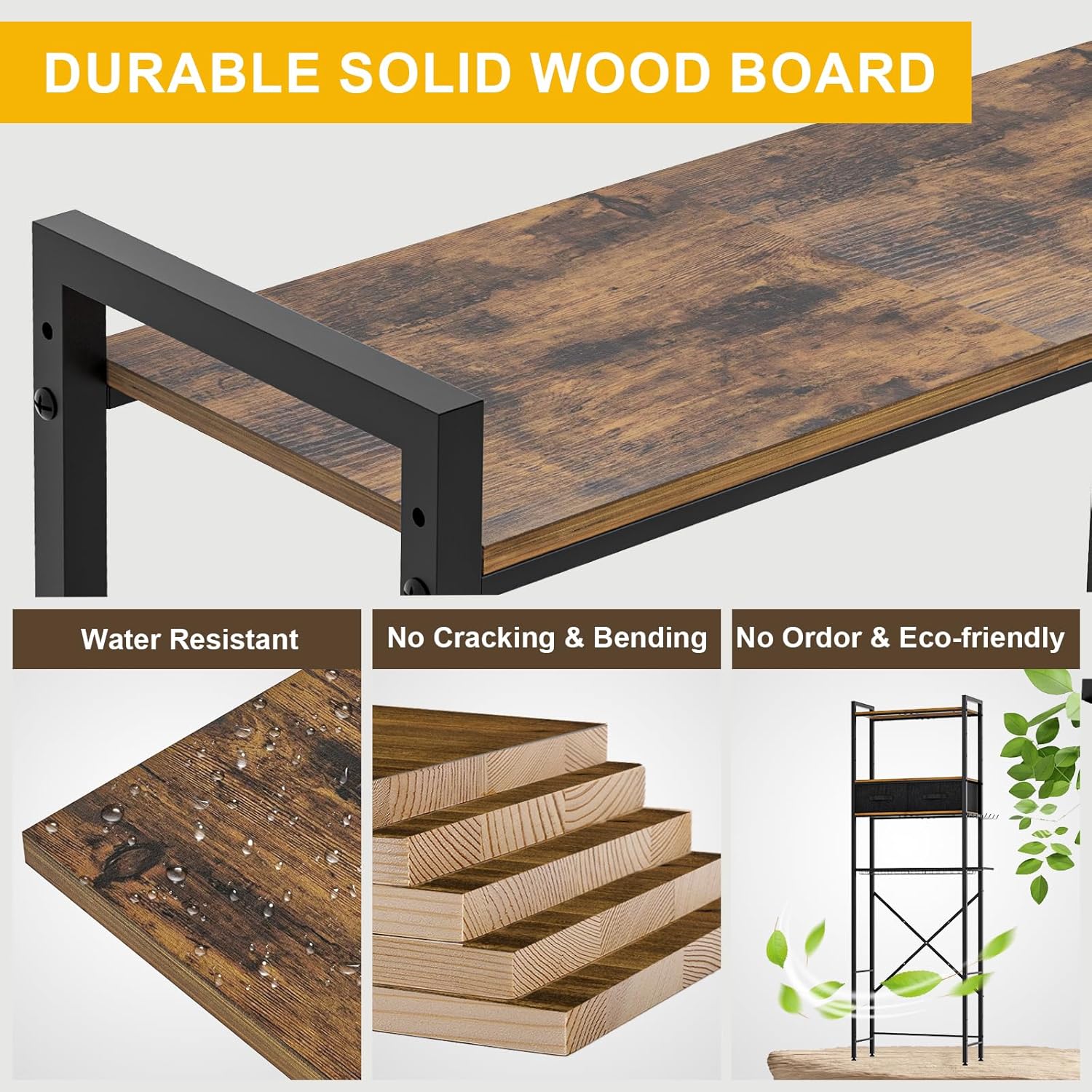 - 【MULTl-ROOM USE】 : The metal frame and rustic wood shelves make a nice and practical place perfect for plant pots on a balcony, laundry hamper in a laundry room or a mini fridge in a dorm room, providing you a mess-free and decent space. No drilling into walls especially fits apartment and rental.