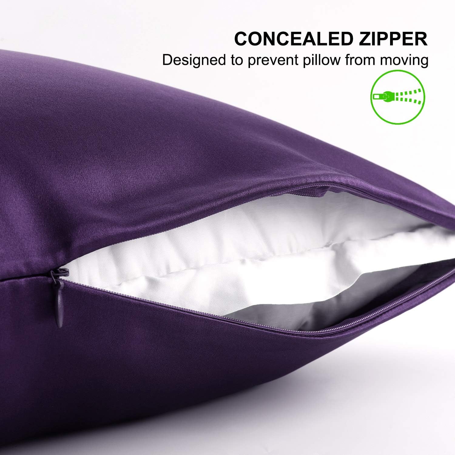 ALASKA BEAR Silk Pillowcase for Hair and Skin, Set of 2 Pure Genuine 22 Momme Mulberry Silk Pillow Cases King Size for Bliss Sleep Better Than Poly Satin, Zipper Closure(2pc, Dark Purple)