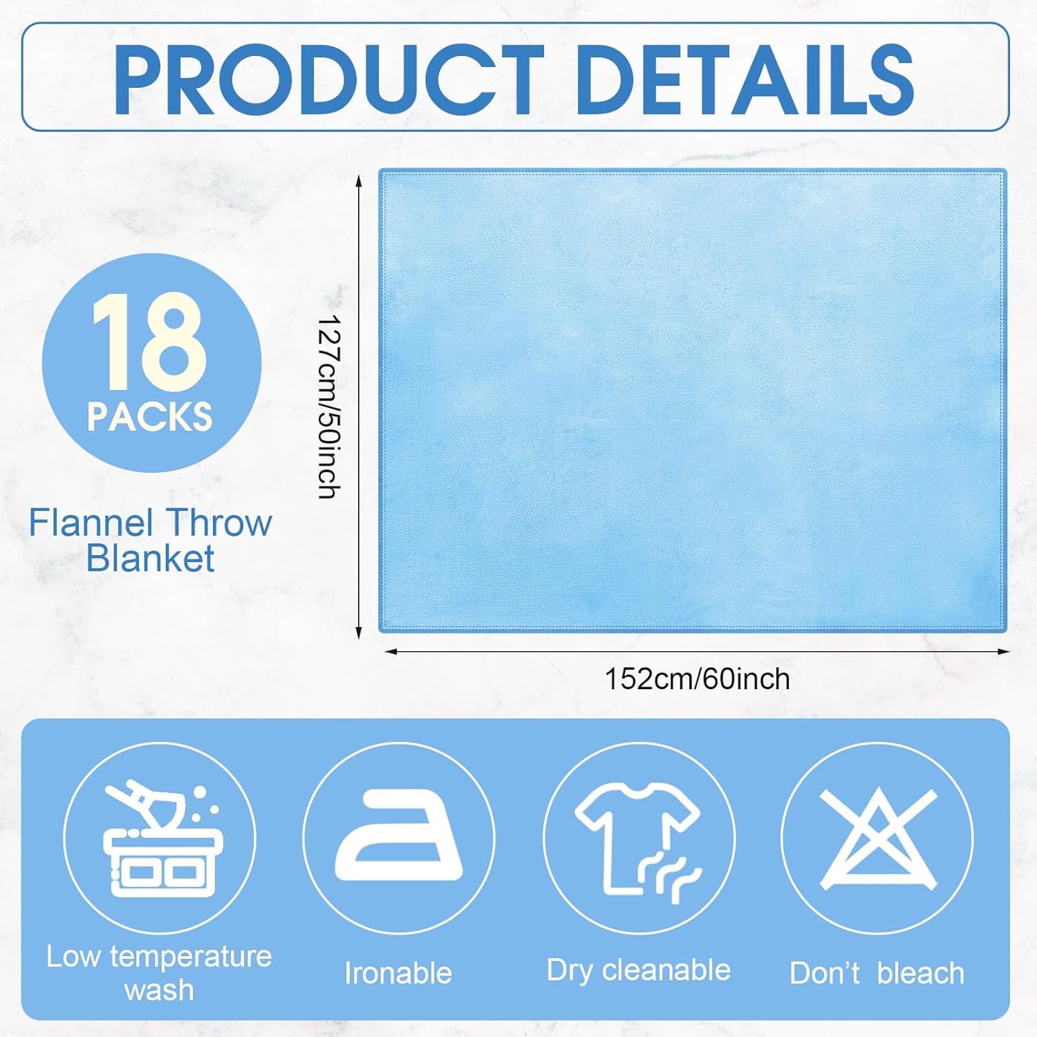 18 Pieces Fleece Blankets Bulk for Wedding 50 x 60 Inch Soft Lightweight Flannel Throw Blankets Bulk for Wedding Guests Home Outdoor Couch Sofa Bed Gifts (Light Blue)