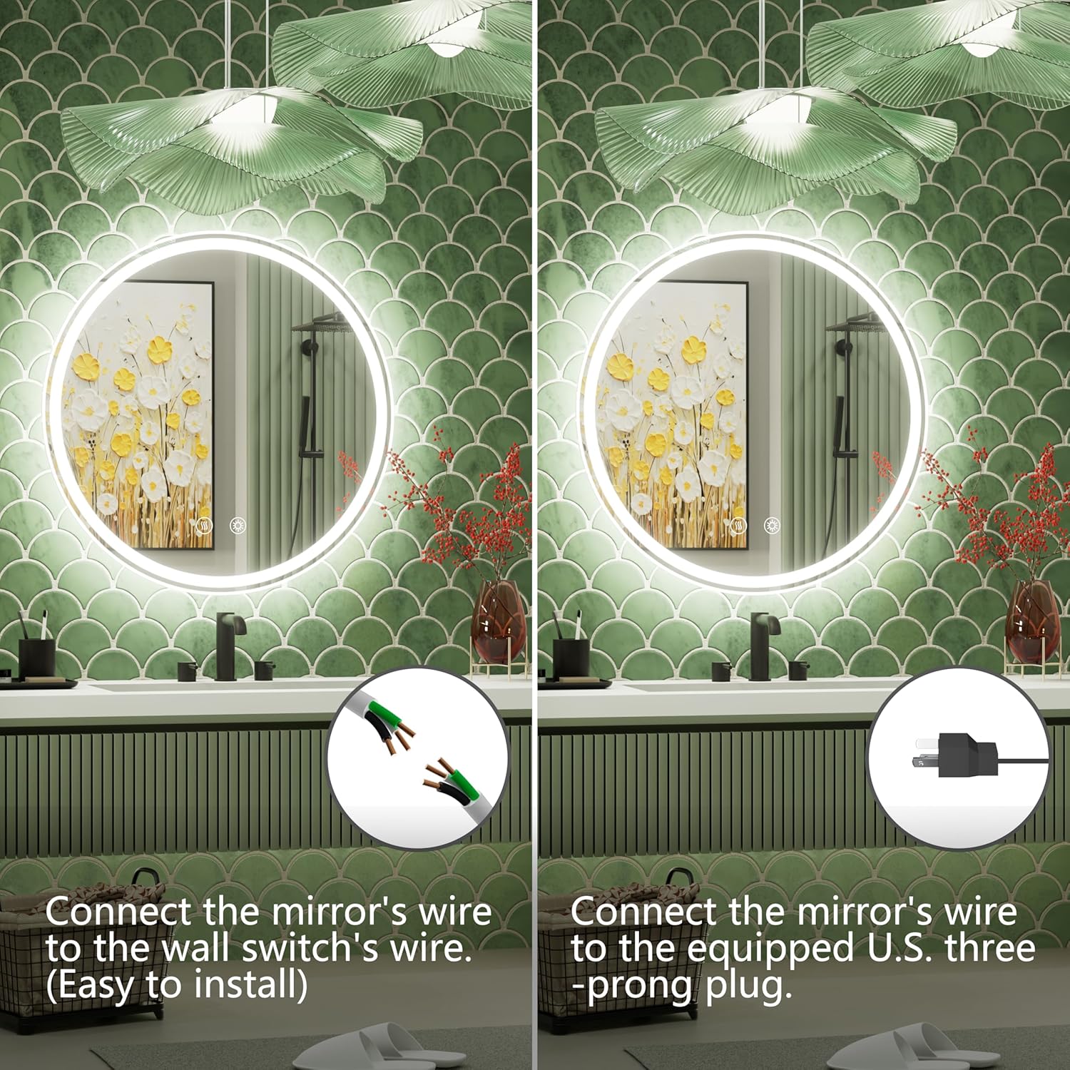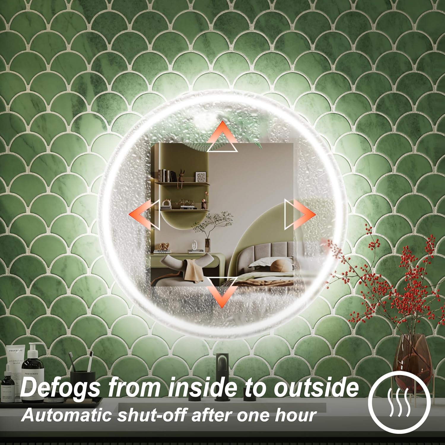 - [ Fog-Free Clarity ] Say GoodBye to Foggy Mirrors! JSneijder round led bathroom mirror has built-in defogger, ensures a clear reflection even after a hot shower, automatic shut-off after one hour,enhancing your daily routine without compromising visibility