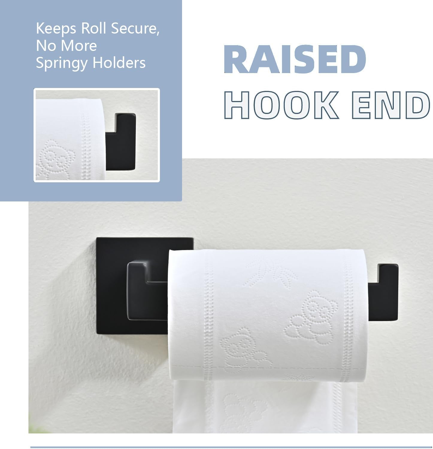 - Versatile Functionality & Placement: The wall-mounted toilet paper holder and square robe hooks provide practical storage solutions for towels, robes, keys, and more. Install them in bathrooms, kitchens, garages, or laundry rooms to maximize space and keep items organized