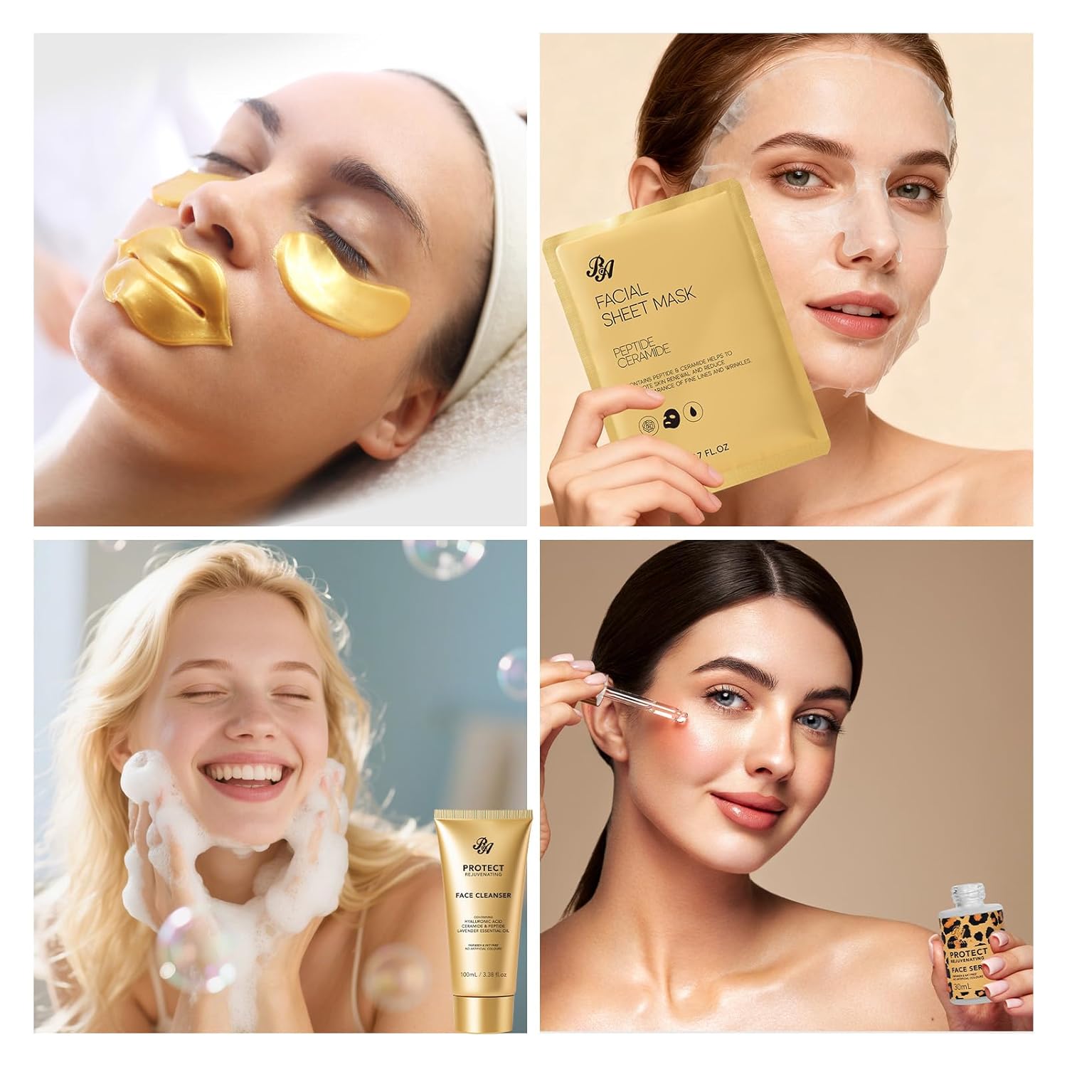 - Head To Toe Skin Care: Let this skin care kit pamper your skin! Clay mask and gel cleanser to cleanse your skin. Under Eye patches for reduce dark circles, eye bags. Gel lip mask and lip gloss for plump lips. Sheet masks, face cream, face serum and hand cream for nourished, hydrated skin. Bath bombs to pleasure the body and mind. Perfume ensures that the delightful fragrance lasts all day, keeping you fresh and confident