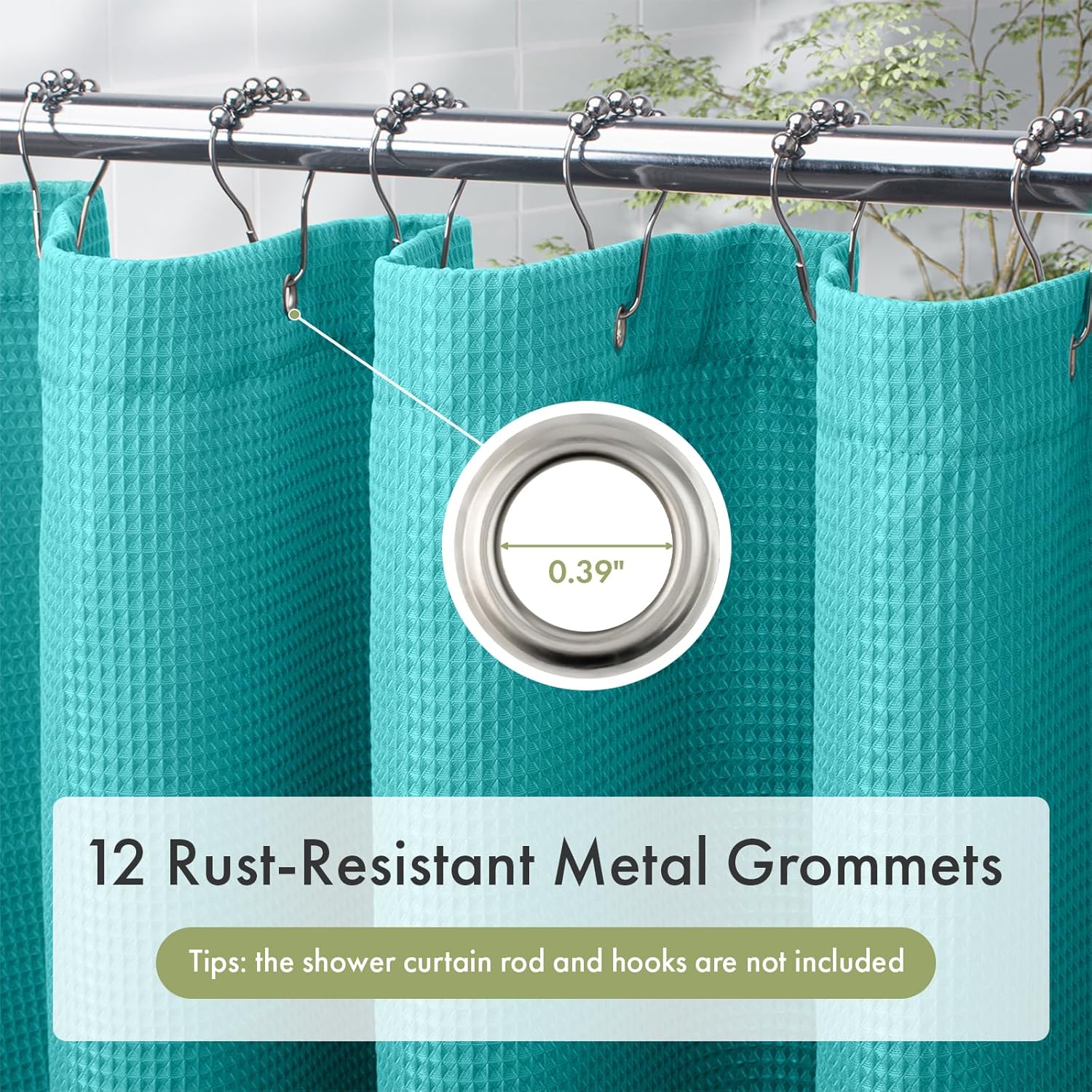 - Easy installation - Each waffle shower curtain has 12 rust-resistant metal grommets which fit most curtain hooks. The 72x72 Inches turquoise shower curtain fits most standard-sized bathtubs and shower stalls.
