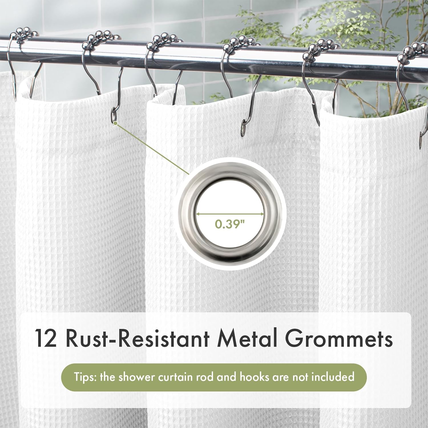 - Easy installation - Each waffle shower curtain has 12 rust-resistant metal grommets which fit most curtain hooks. The 72x74 Inches white shower curtain fits most standard-sized bathtubs and shower stalls.