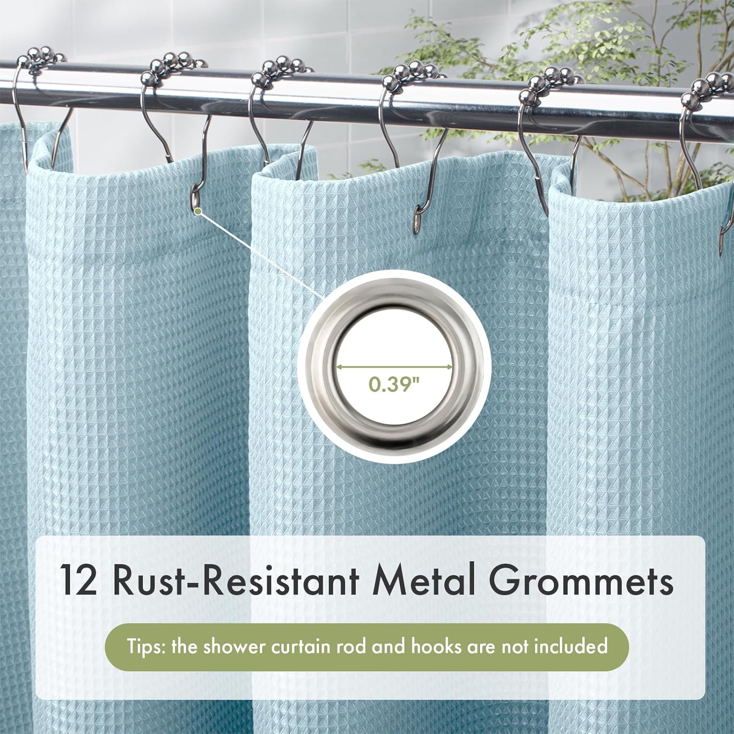 - Easy installation - Each waffle shower curtain has 12 rust-resistant metal grommets which fit most curtain hooks. The 72x72 Inches misty blue shower curtain fits most standard-sized bathtubs and showers.