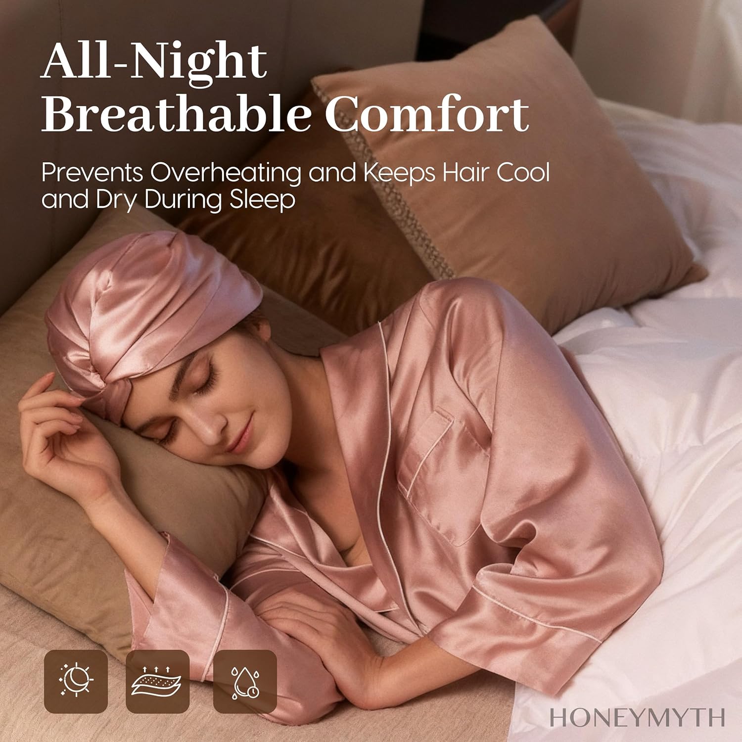 - All-Night Breathable Comfort:Breathable silk prevents overheating and moisture buildup while you sleep. Keeps your hair cool, dry, and refreshed through the night.