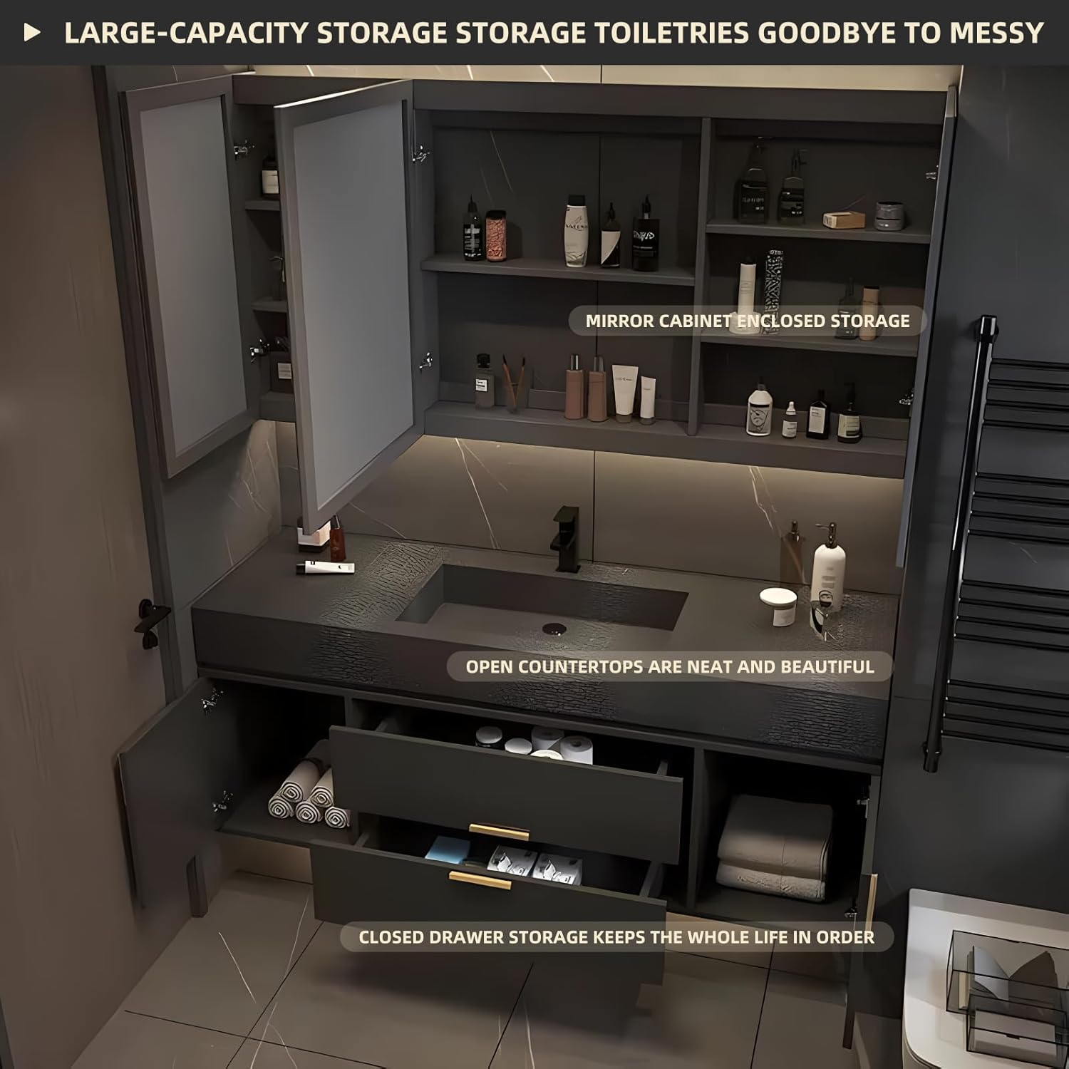 - Special Feature : Bathroom Vanity with Sink, Floating Bathroom Vanity Set, LED Anti-Fog Mirror, Mirror Cabinet, Rock Countertop Bathroom Vanity with Sink, Floating Bathroom Vanity Set, LED Anti-Fog Mirror, Mirror Cabinet, Rock Countertop