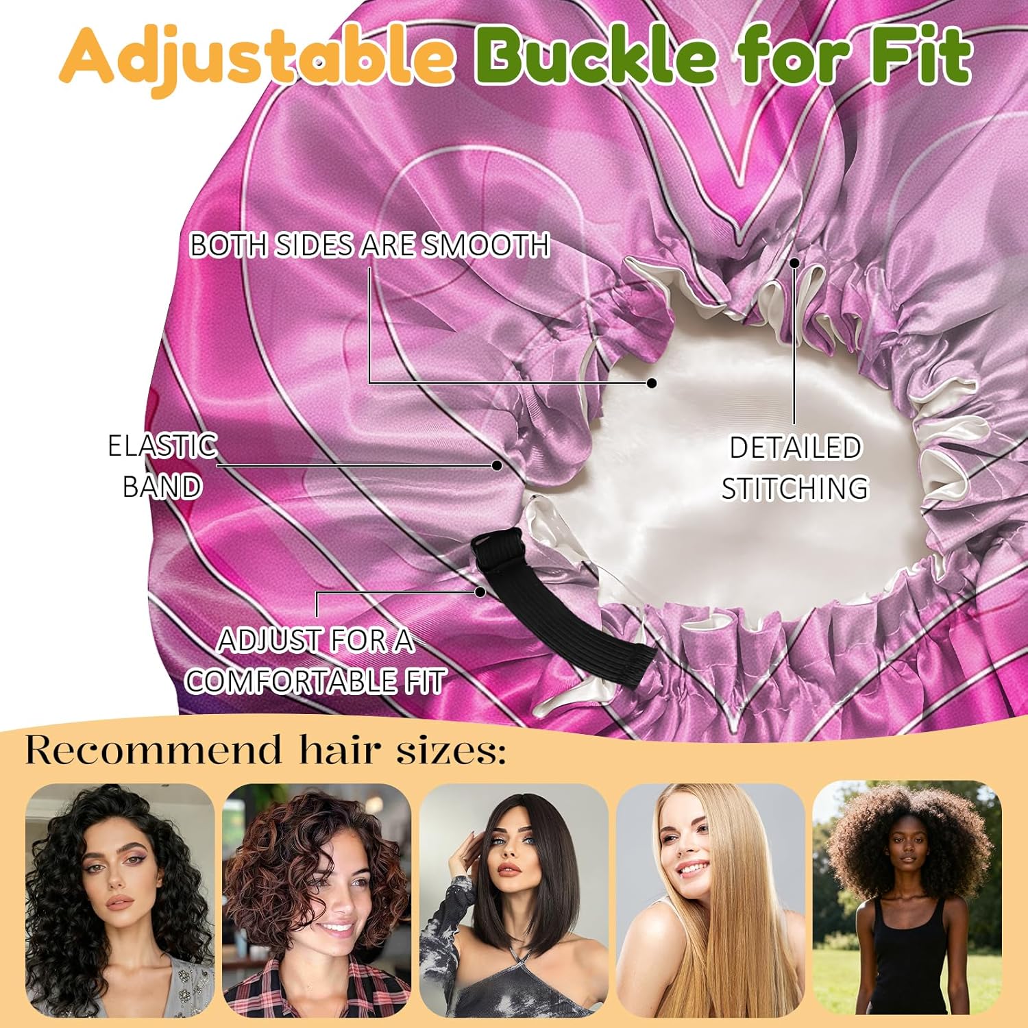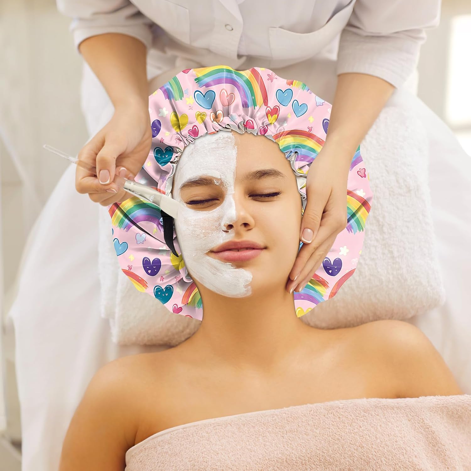 2 PCS Bonnets for Women Girls Satin Hair Bonnet Silk Adjustable Elastic Double Layer Hair Wrap Sleep Cap Comfort Cute-Rainbow Heart