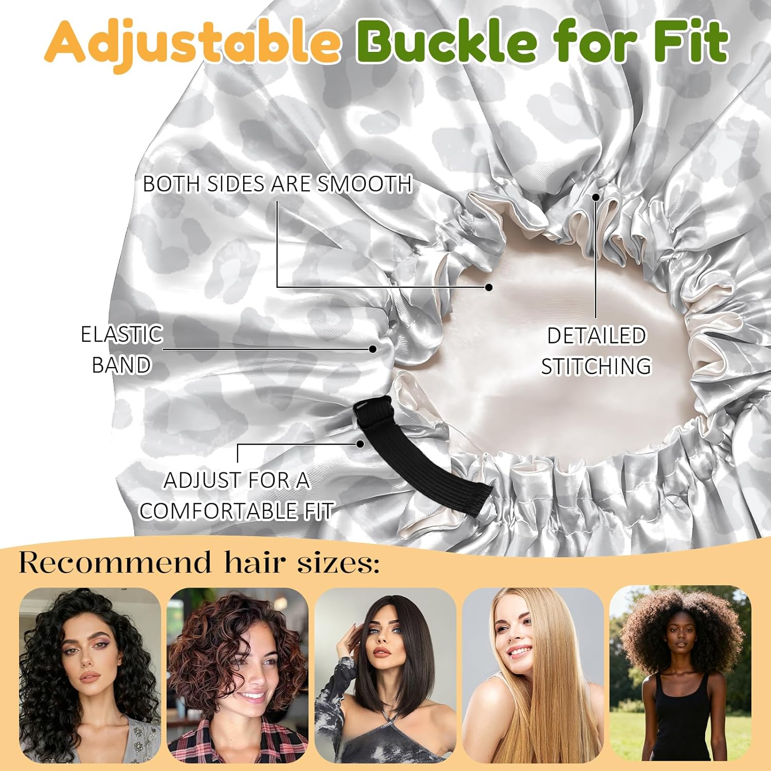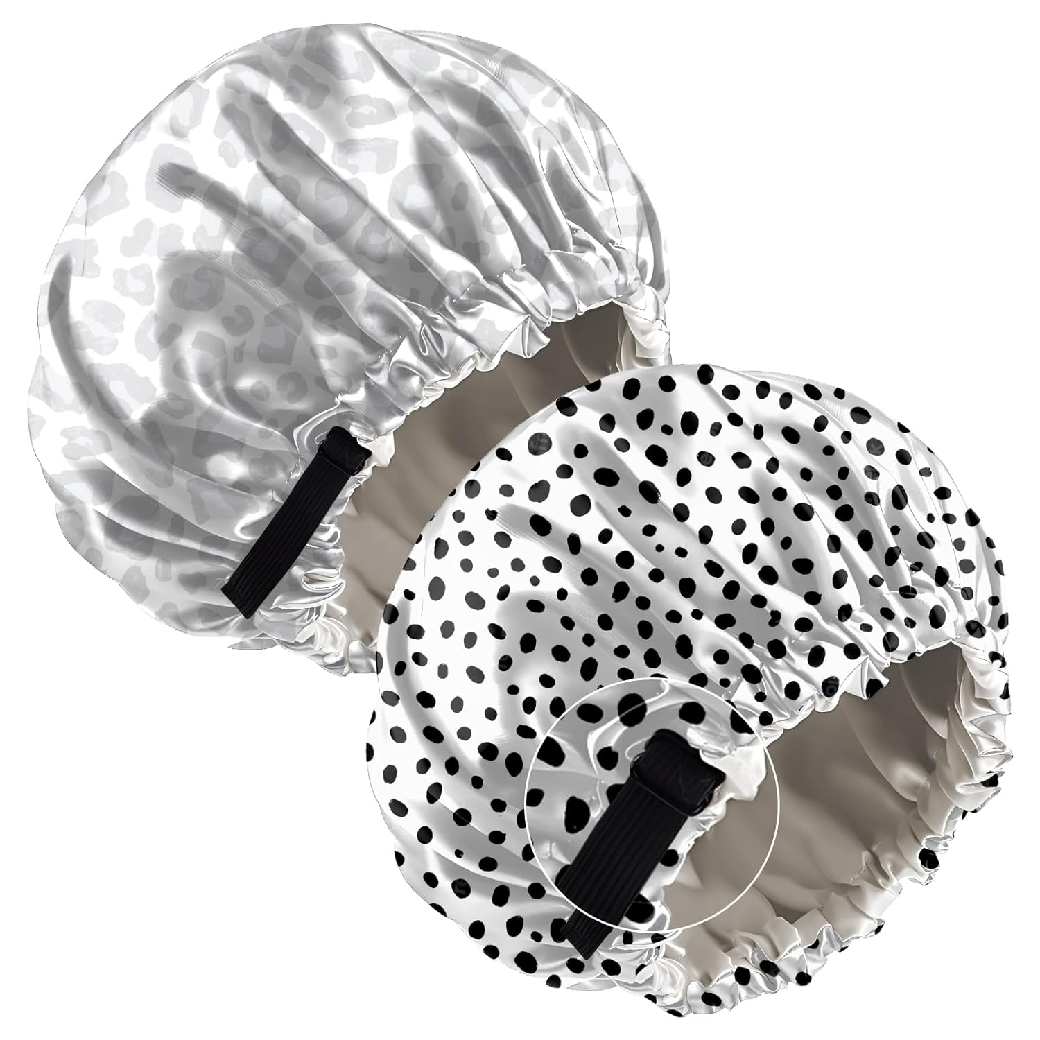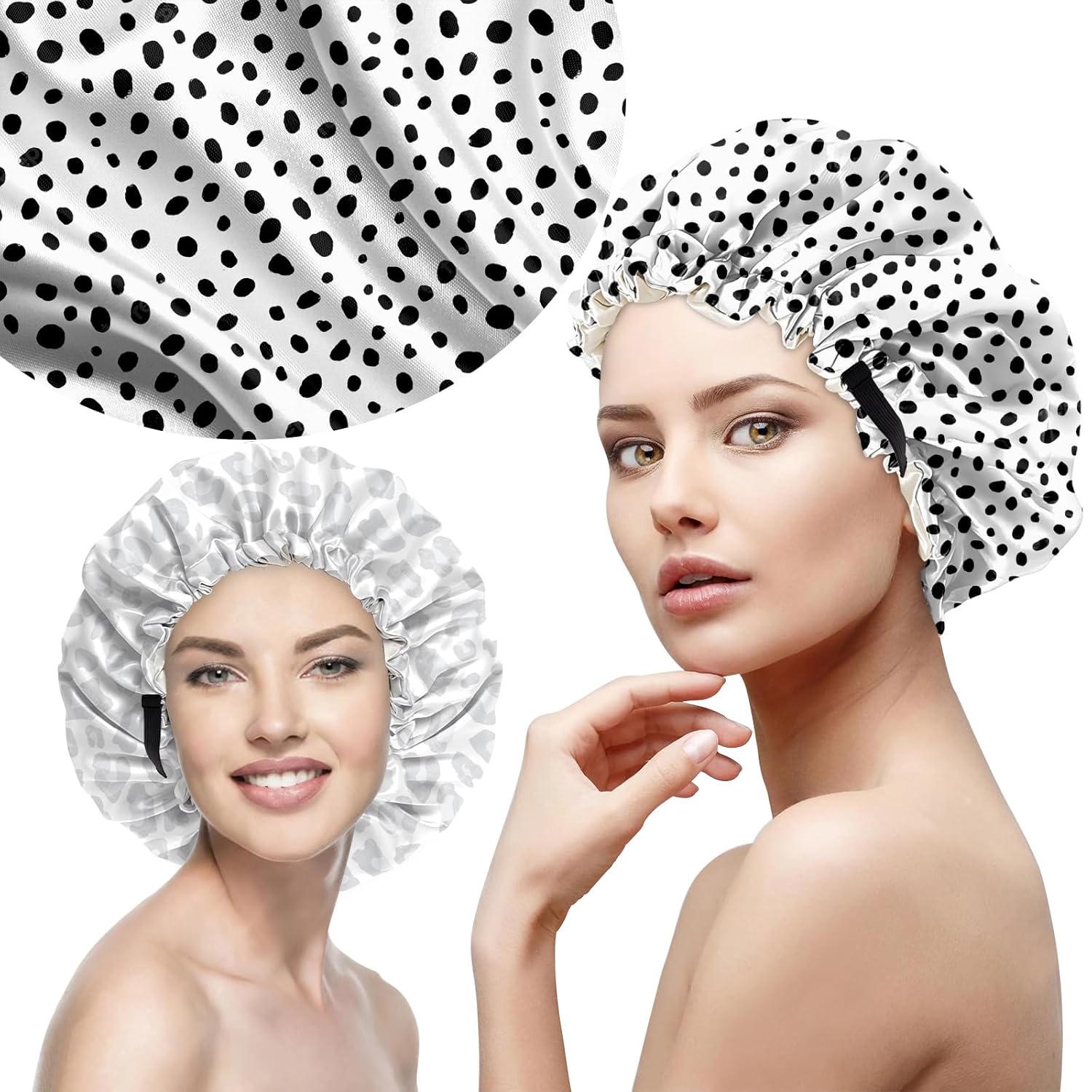2 PCS Bonnets for Women Girls Satin Hair Bonnet Silk Adjustable Elastic Double Layer Hair Wrap Sleep Cap Comfort Cute-Leopard Spots