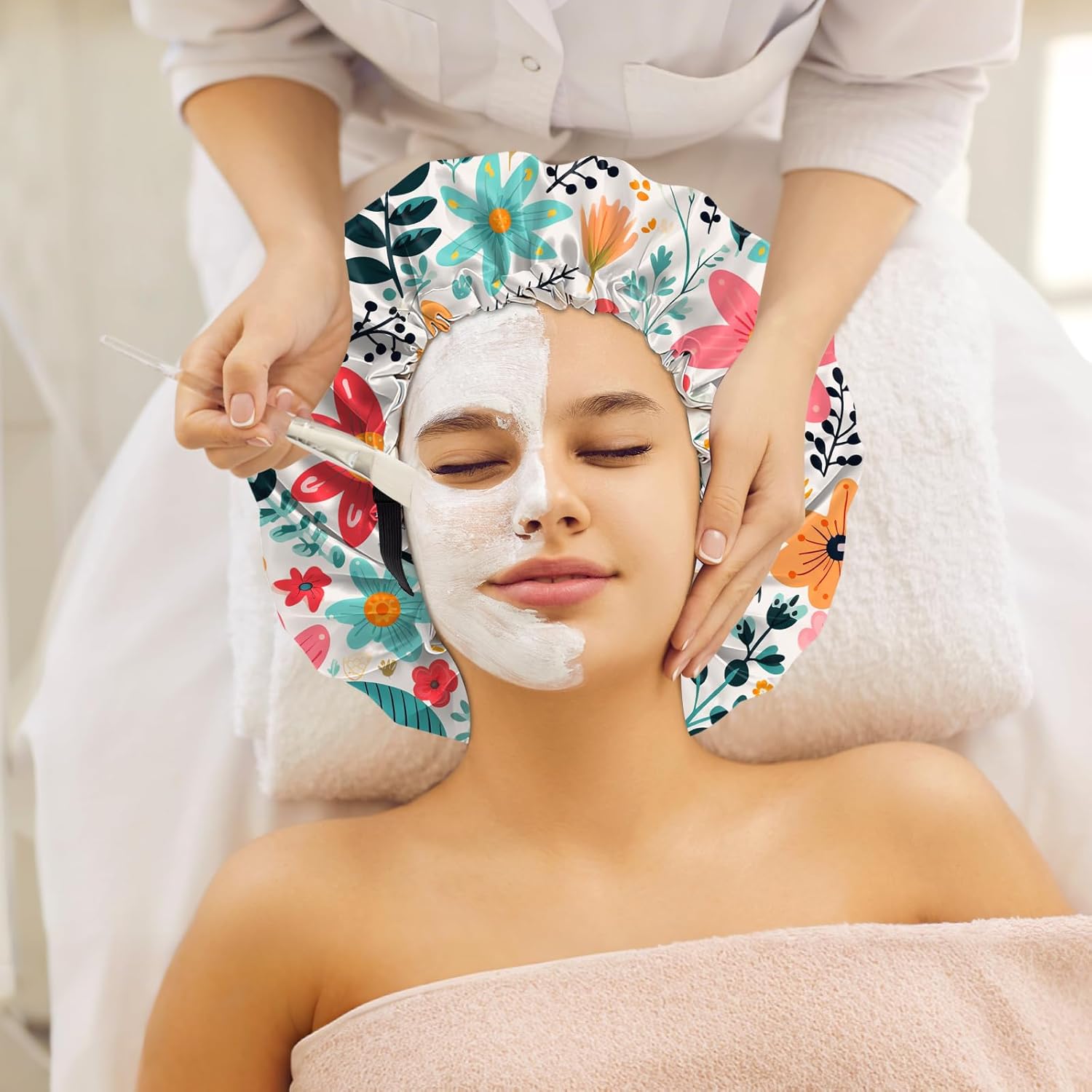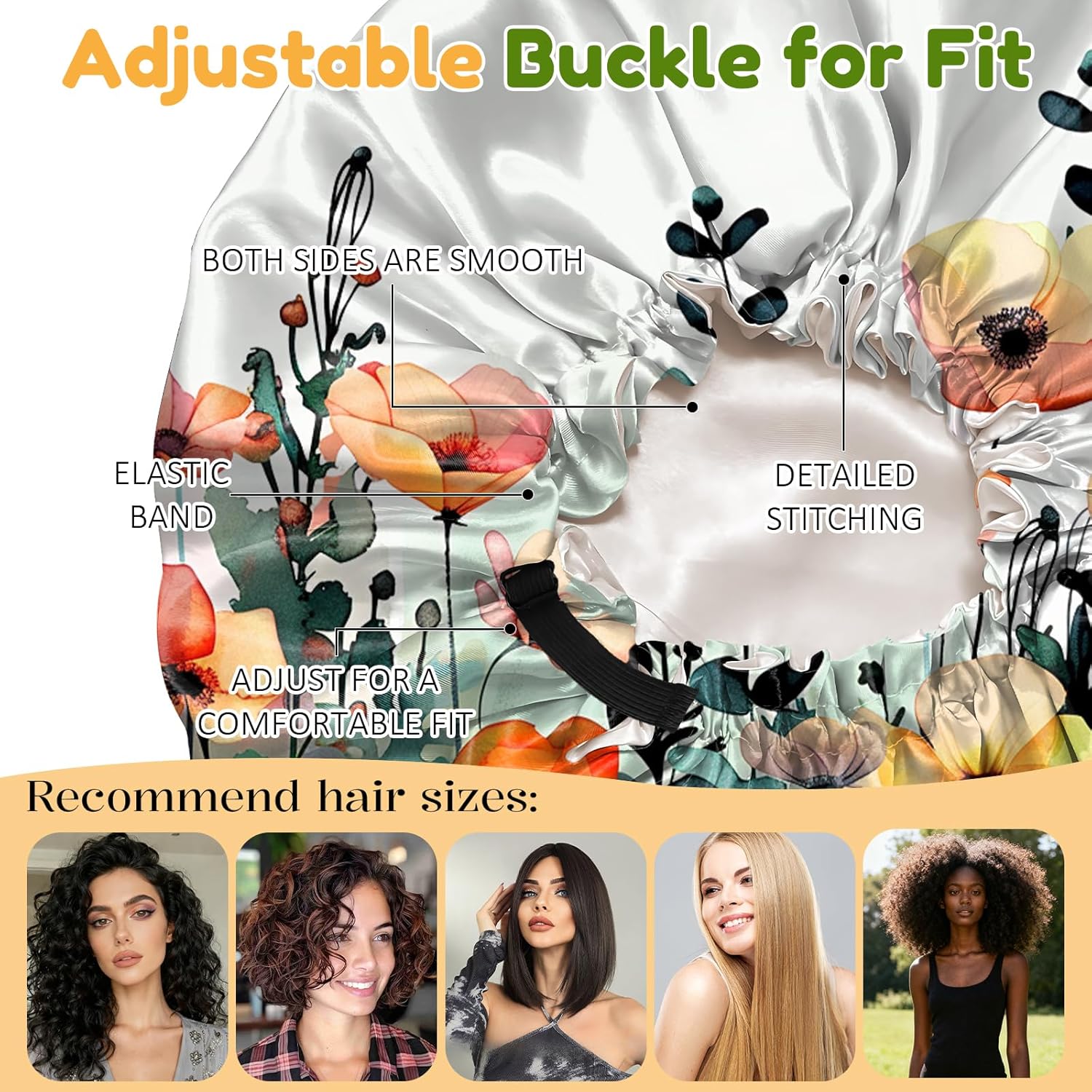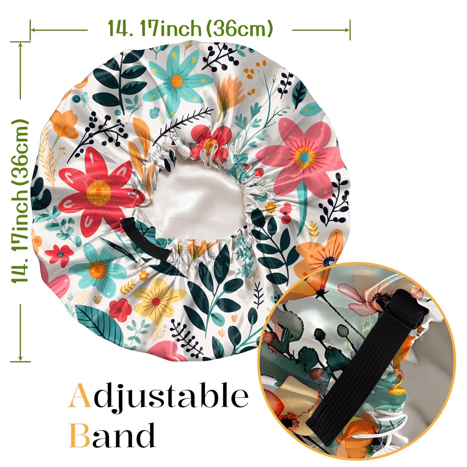2 PCS Bonnets for Women Girls Satin Hair Bonnet Silk Adjustable Elastic Double Layer Hair Wrap Sleep Cap Comfort Cute-Red Flower