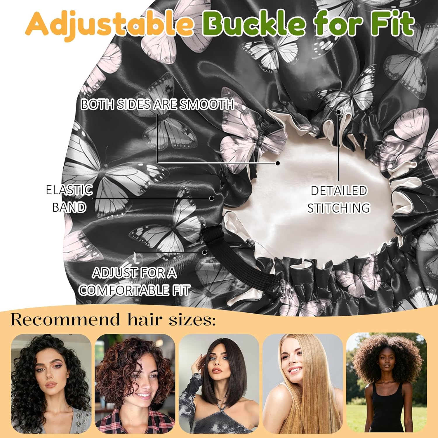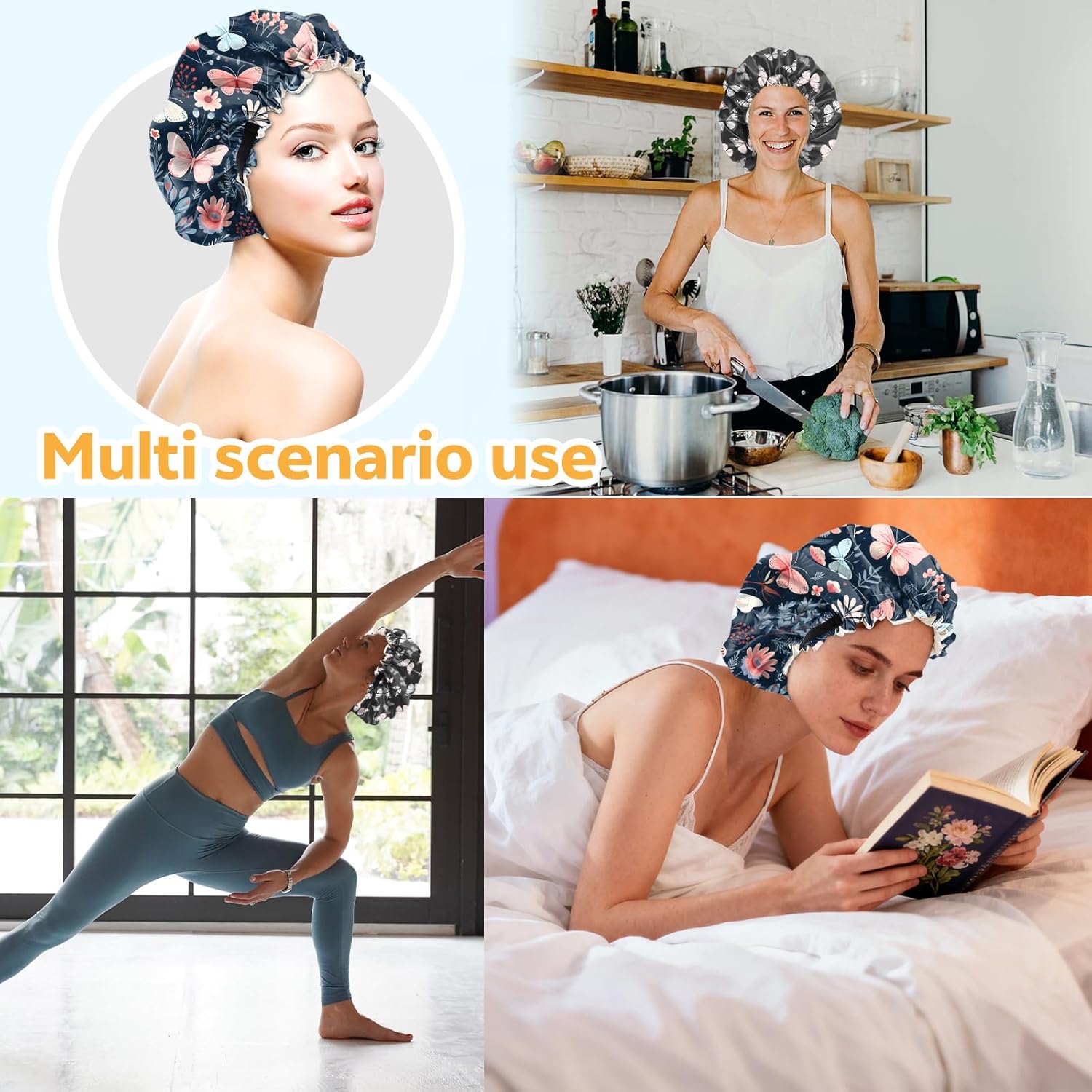 2 PCS Bonnets for Women Girls Satin Hair Bonnet Silk Adjustable Elastic Double Layer Hair Wrap Sleep Cap Comfort Cute-Flower Butterfly