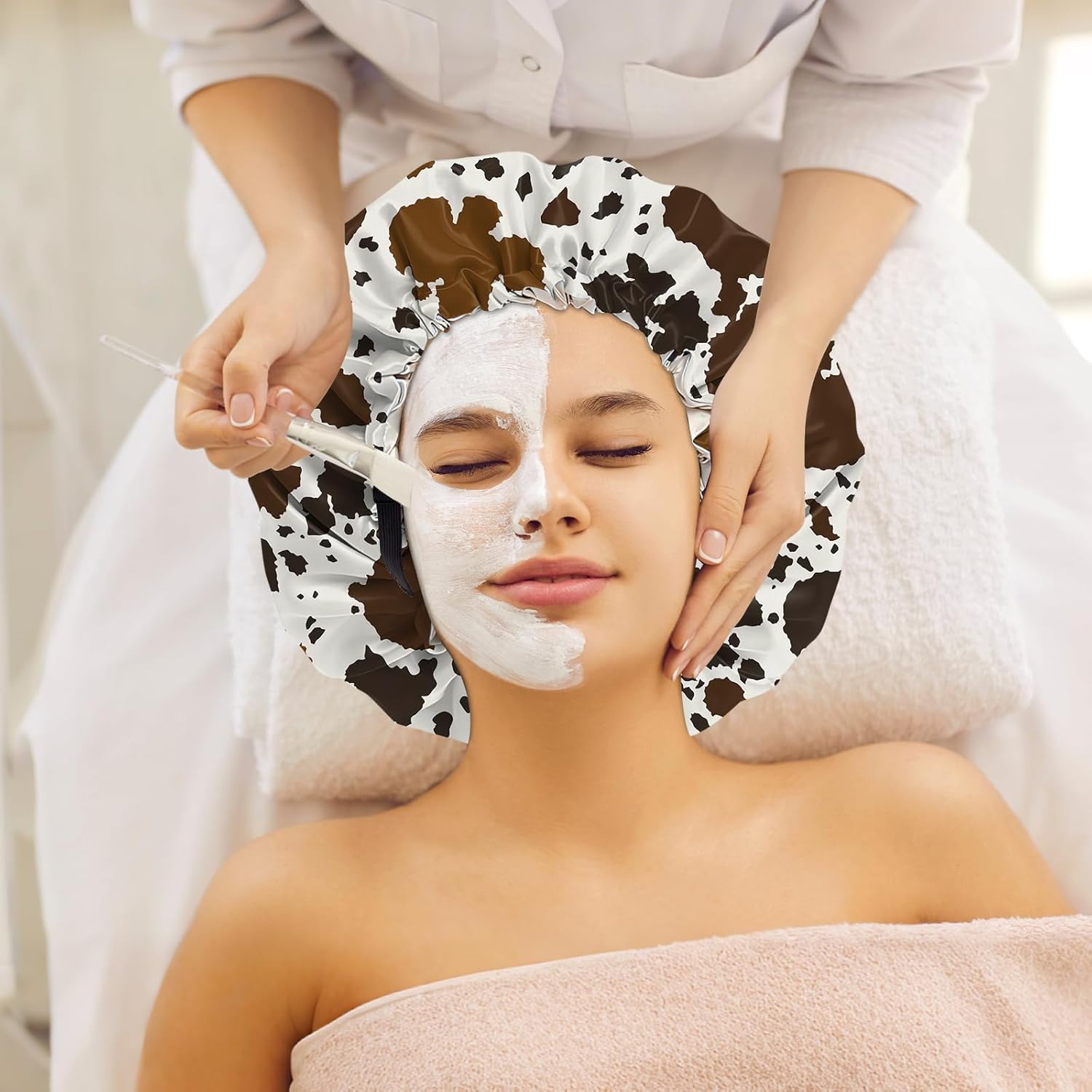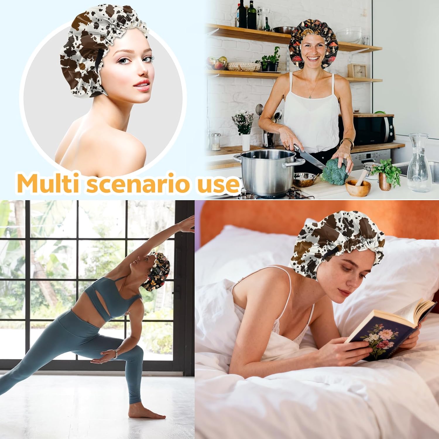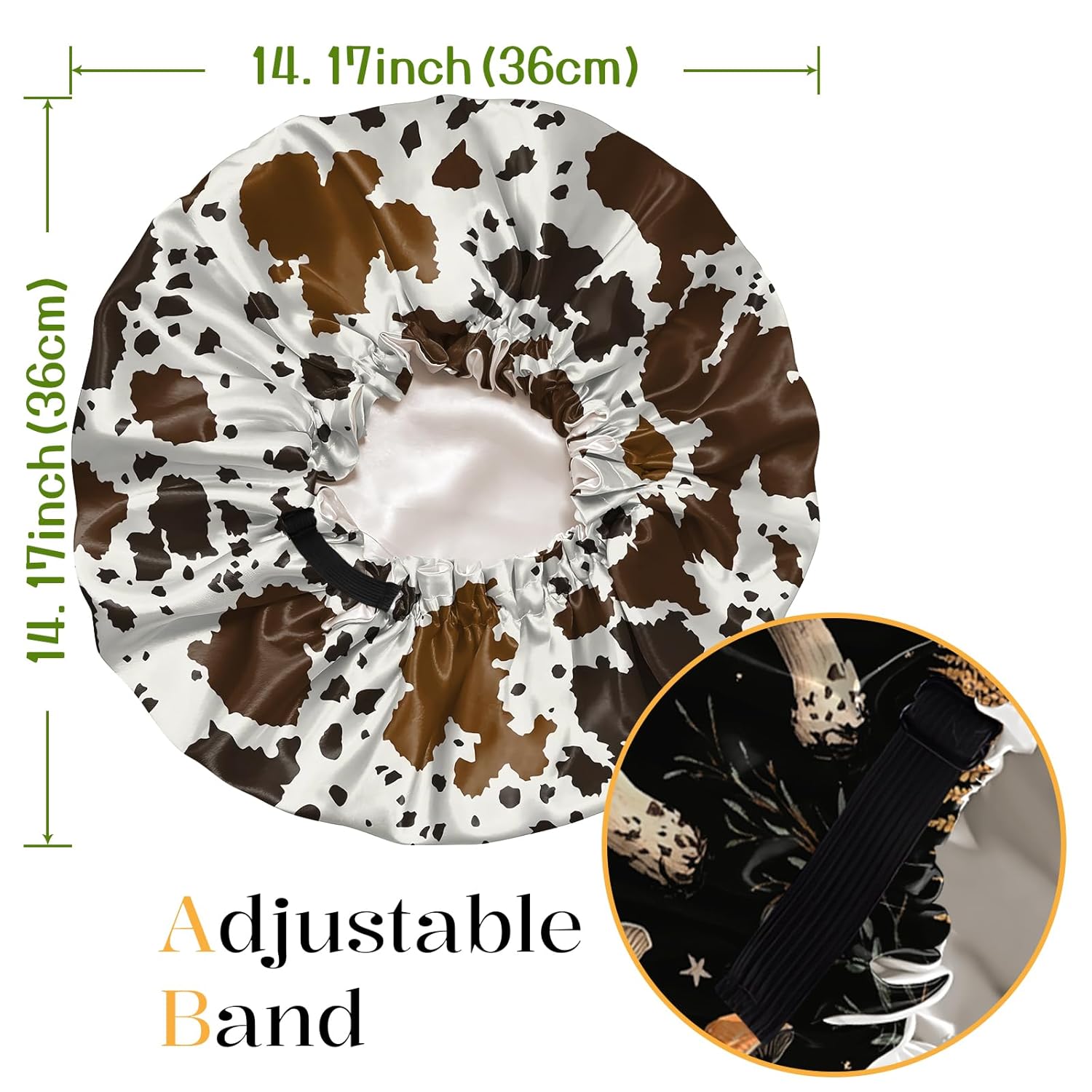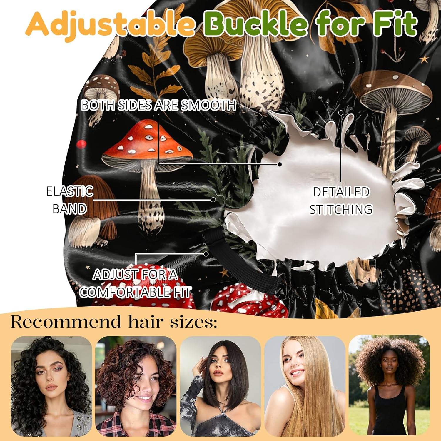 2 PCS Bonnets for Women Girls Satin Hair Bonnet Silk Adjustable Elastic Double Layer Hair Wrap Sleep Cap Comfort Cute-Mushroom Cowhide
