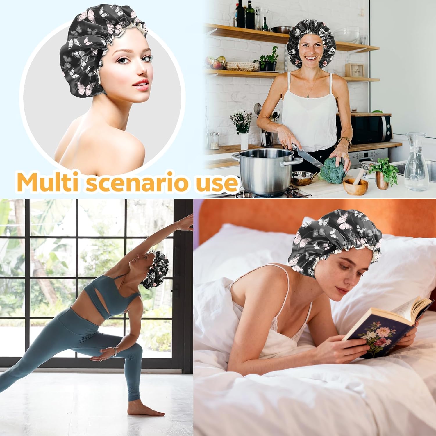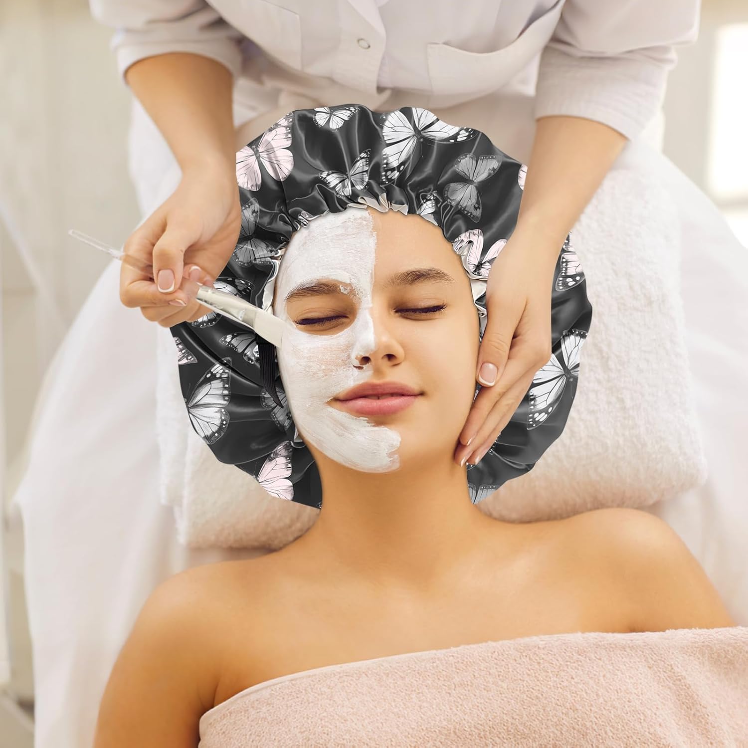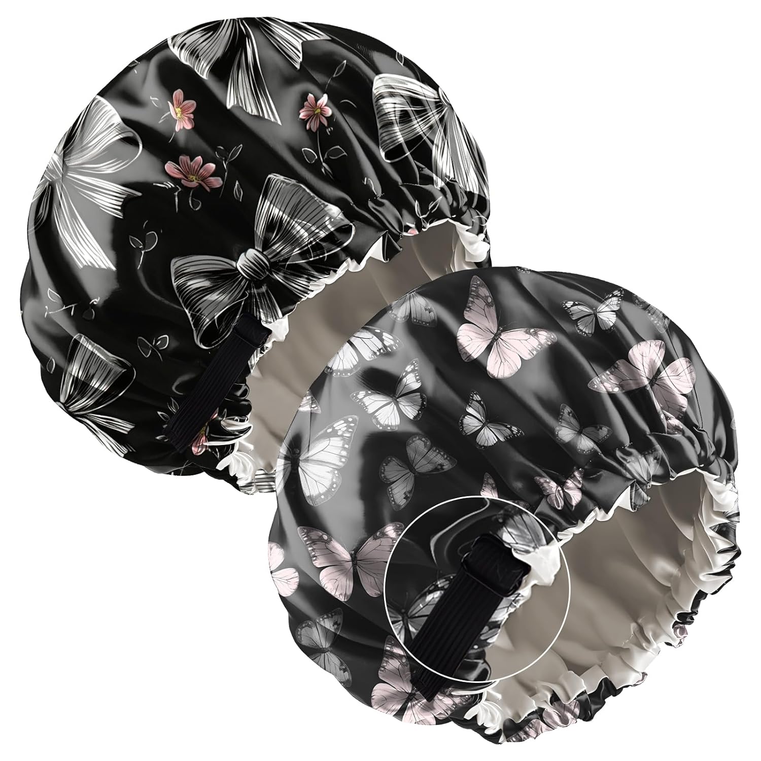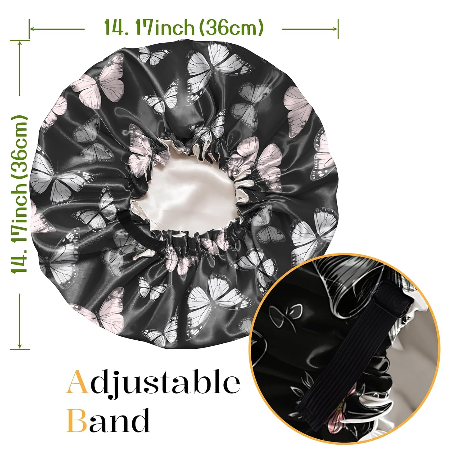 2 PCS Bonnets for Women Girls Satin Hair Bonnet Silk Adjustable Elastic Double Layer Hair Wrap Sleep Cap Comfort Cute-Bowknot Butterfly