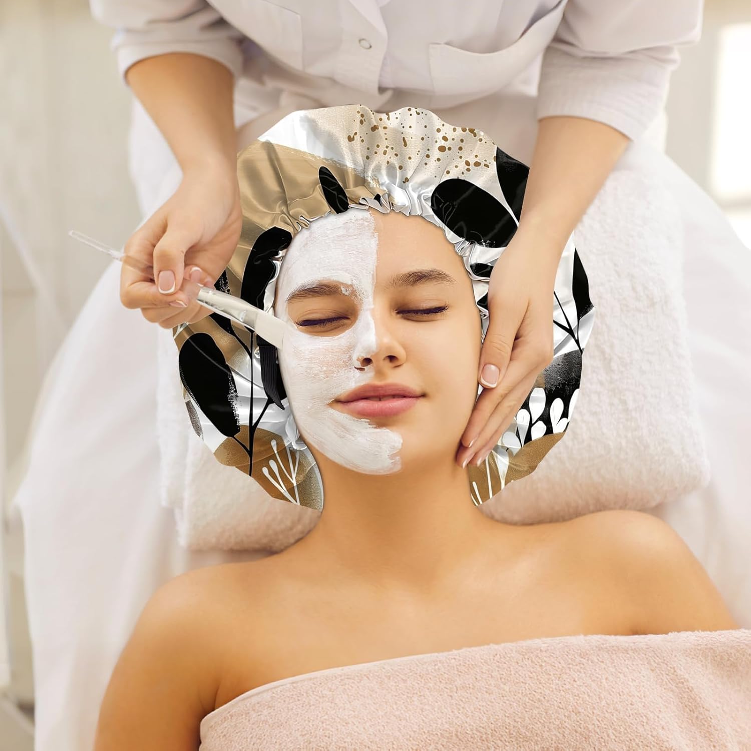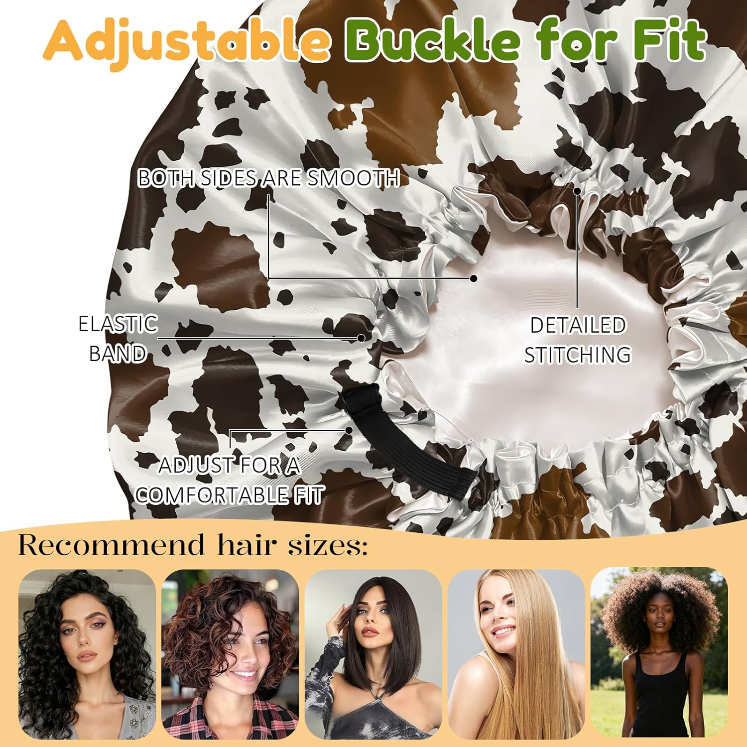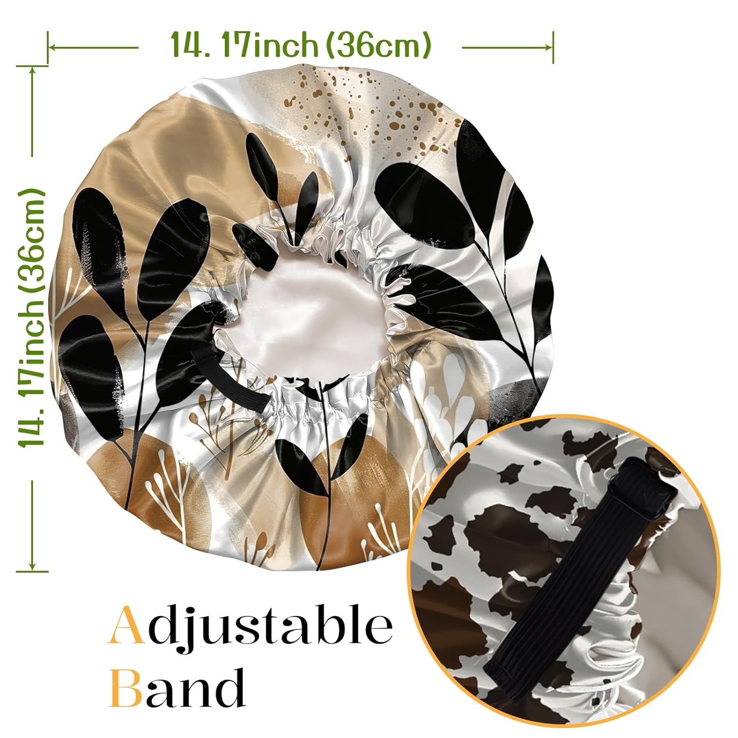 2 PCS Bonnets for Women Girls Satin Hair Bonnet Silk Adjustable Elastic Double Layer Hair Wrap Sleep Cap Comfort Cute-Cowhide Leaf