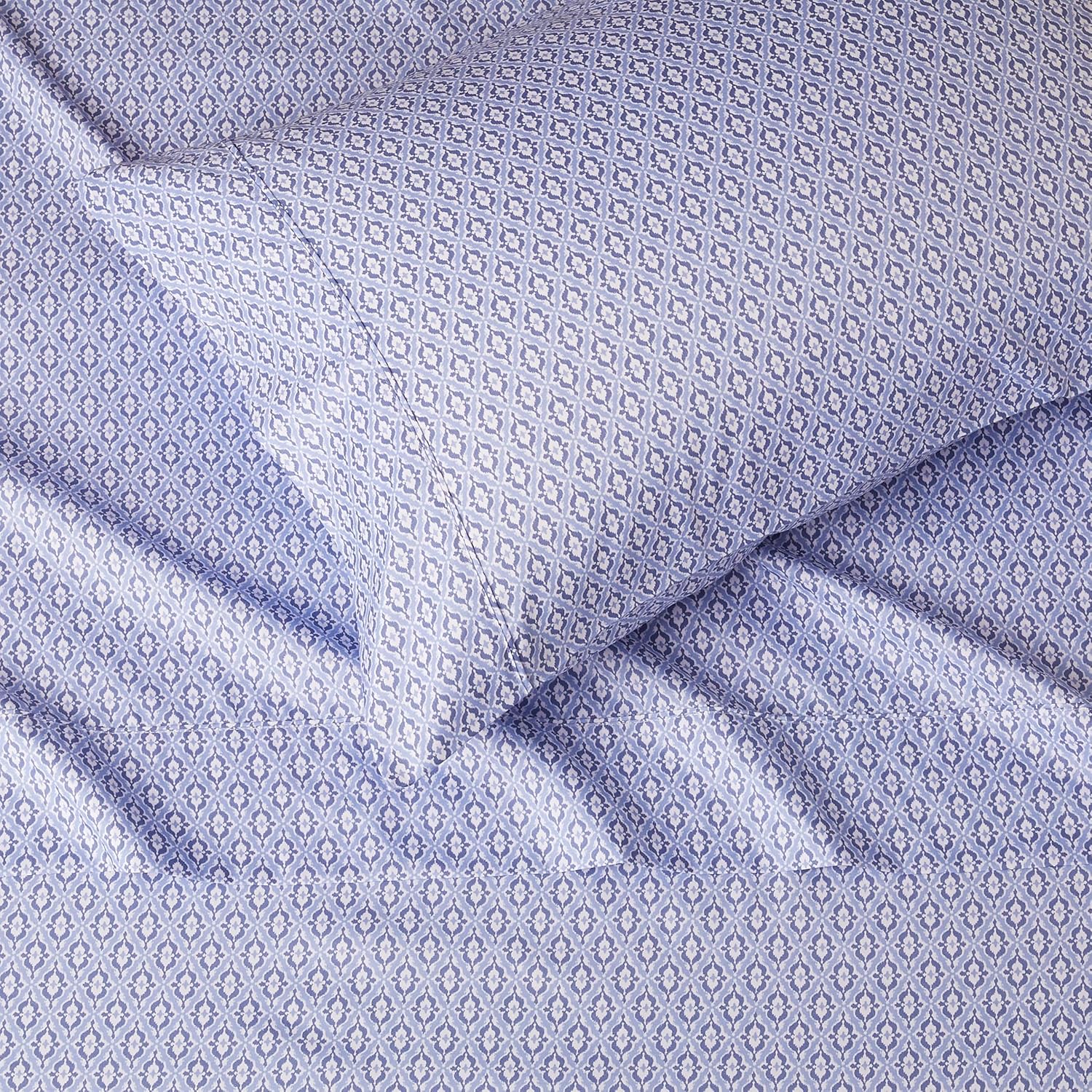 Amazon Basics Lightweight Super Soft Easy Care Wrinkle Free Microfiber 3 Piece Bed Sheet Set with 14-Inch Deep Pockets, Twin, Blue Damask, Printed, Kids, Men & Women Bedding (Pack of 4)