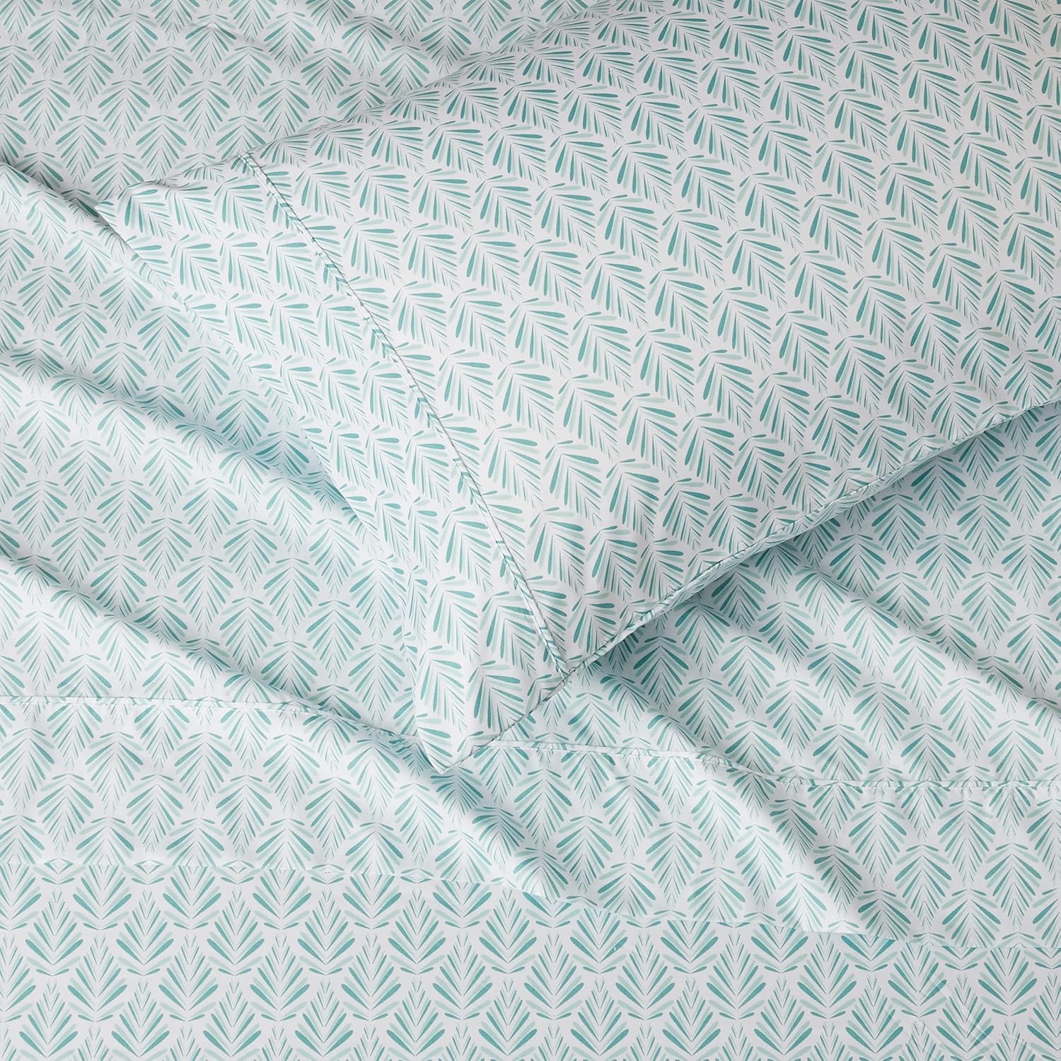 Amazon Basics Lightweight Super Soft Easy Care Wrinkle Free Microfiber 3 Piece Bed Sheet Set with 14-Inch Deep Pockets, Twin, Aqua Fern, Floral, Kids, Men & Women Bedding (Pack of 4)